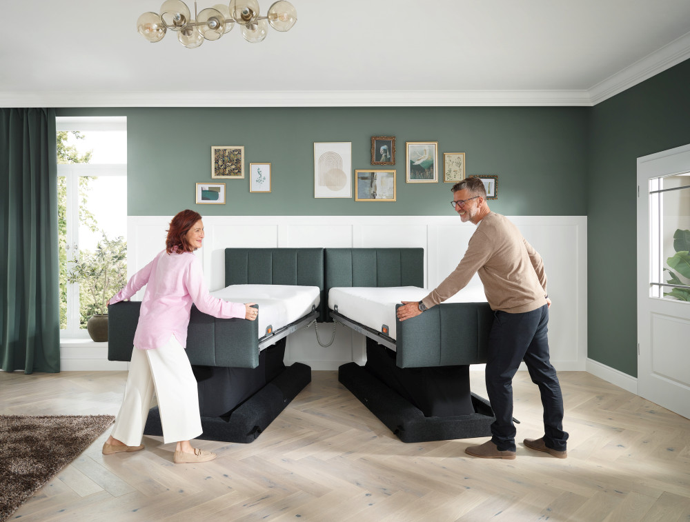 Als Einzel- und als Doppelbett erfüllt diese neue Libra-Variante alle Anforderungen an ein schönes, privates Schlafzimmer bei maximalem Komfort für die Nutzer. Das fahrbare Libra deluxe verbirgt seine Bettbasis inklusive der Rollen unter einer dezenten Formfilz-Abdeckung. Seine Liftfunktion lässt sich mit einem beleuchteten Handschalter einstellen. Entdecken Sie die vielen Vorteile und lassen Sie sich begeistern: