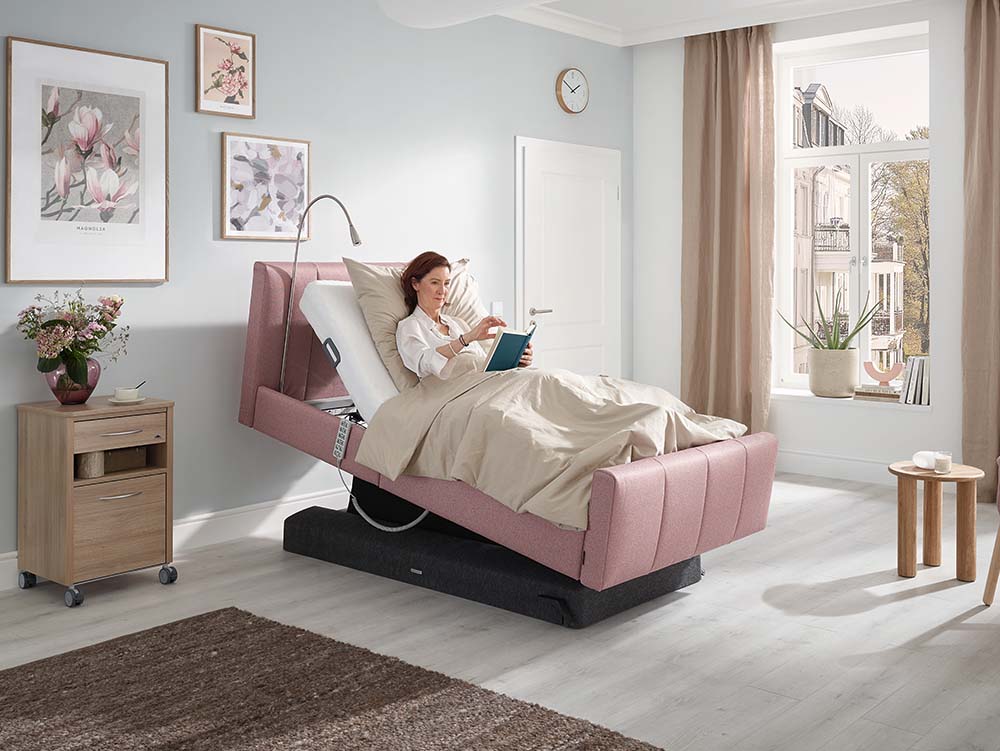 Das Libra deluxe Bettgestell kann auch im Pflegeheim oder im betreuten Wohnen eingesetzt werden. Nachrüstung zu einem vollumfänglichen Pflegebett möglich.