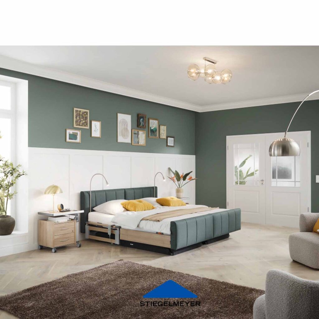 Unterstützung in jeder Lebensphase in einem wohnlichen Ambiente – das ist die Philosophie der Komfortbetten von Stiegelmeyer. Als führender deutscher Hersteller medizinischer Betten verbinden sie ihr technisches Know-how mit einem eleganten Erscheinungsbild. Das Premium Libra deluxe führt dieses Prinzip auf ein neues Niveau.