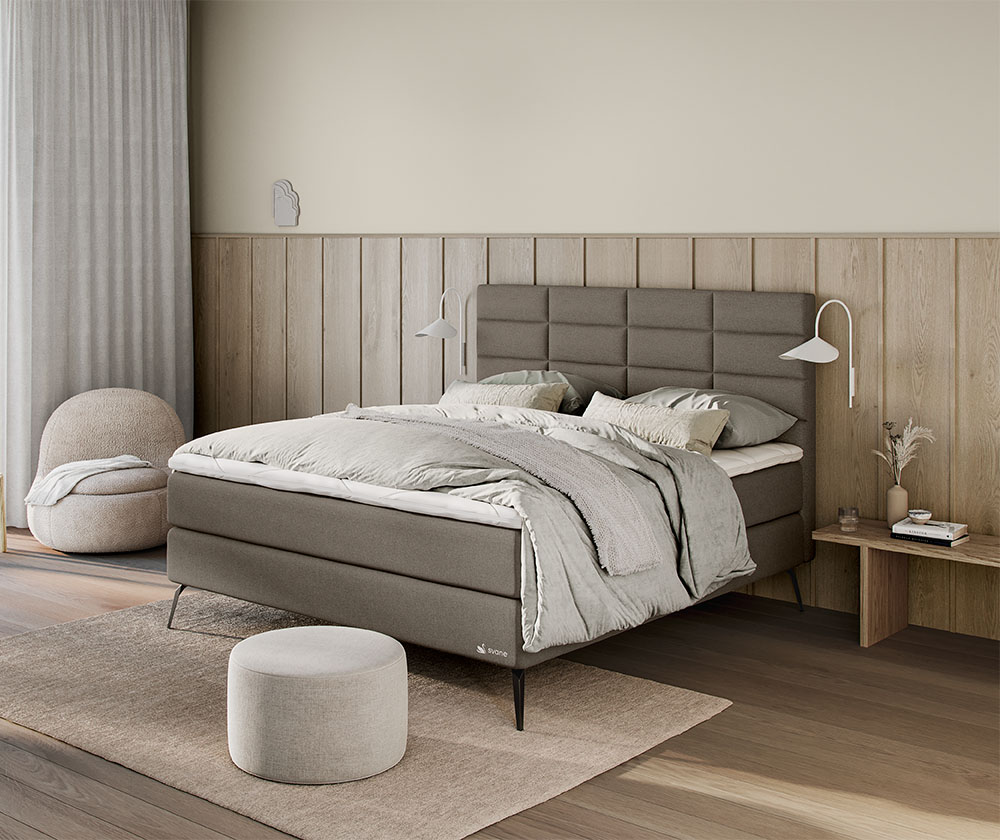 Boxspringbetten – auch als Continentalbett bezeichnet – basieren auf einer Unterstützung durch Federn anstatt durch ein Lattenrost. Fast wie bei einer Federkernmatratze, bietet ein Rahmen mit hochwertigen Stahlfedern die wichtige Unterstützung während des Liegens. Doch beim Boxspringbett wird noch der sogenannte Topper, eine weiche Auflage aus verschiedenen Materialien, aufgelegt und sorgt für den krönenden Abschluss. Durch die Stapelung dieser und weiterer Elemente ist diese Form des Bettes höher als andere Varianten. Besonders für ältere Menschen oder Käufer, die ein hohes Bett bevorzugen, bietet sich diese Schlafgelegenheit an, da man sehr bequem ein- und aussteigen kann. Durch die große Auswahl an Toppern findet jeder Kunde das passende Boxspringbett für seine persönliche Schlafposition.